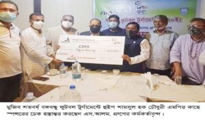 চট্টগ্রাম বিভাগীয় ফুটবল এসোসিয়েশন কর্তৃক আয়োজিত চট্টগ্রাম এম এ আজিজ স্টেডিয়াম ও বান্দরবান জেলা স্টেডিয়ামে আগামী ২৮ নভেম্বর হতে অনুষ্ঠিতব্য মুজিব শতবর্ষ বঙ্গবন্ধু ফুটবল টুর্নামেন্ট-২০২০ এর উদ্বোধন উপলে চট্টগ্রাম বিভাগের ১১টি জেলা প্রতিনিধির সাথে এক মতবিনিময় সভা ও একক স্পন্সর স্বনামধন্য শিল্পপ্রতিষ্ঠান এস আলম গ্রুপ কর্তৃক চেক হস্তান্তর অনুষ্ঠান গত ১৫ নভেম্বর সন্ধ্যায় নগরীর ১টি রেস্টুরেন্টে অনুষ্ঠিত হয়। এতে সভাপতিত্ব করেন জাতীয় সংসদের হুইপ, চট্টগ্রাম বিভাগীয় ফুটবল এসোসিয়েশনের সভাপতি, শেখ কামাল আন্তর্জাতিক কাব কাপ ফুটবল টুর্নামেন্টের সফল আয়োজক আলহাজ্ব শামসুল হক চৌধুরী এমপি। এতে অতিথি হিসেবে উপস্থিত ছিলেন এস আলম গ্রুপের চেয়ারম্যান মহোদয়ের পি. এস আকিজ উদ্দীন, এস আলম গ্রুপের ম্যানেজার (প্রশাসন) ও কুসুমপুরা ইউনিয়ন আওয়ামীলীগের সাধারণ সম্পাদক এড.এম. হোসাইন রানা, কাব কর্মকর্তা ও অন্যান্য ব্যক্তিবর্গ উপস্থিত ছিলেন। উল্লেখ্য উক্ত টুর্ণামেন্টে দেশের স্বনামধন্য শিল্প প্রতিষ্ঠান একক স্পন্সর হিসেবে গতকাল ৫০ ল টাকার চেক হস্তান্তর করেন। সভার শুরুতে জাতির জনক বঙ্গবন্ধু, ১৫ আগষ্টে নিহত সকল শহীদ, জাতীয় চারনেতা, সকল শহীদ মুক্তিযোদ্ধা, করোনা মহামারিতে প্রয়াত সকল জাতীয় নেতৃবৃন্দ ও ক্রীড়া সংগঠকদের আতœার মাগফেরাত কামনা করে নিরবতা ও দোয়া কামনা করা হয়। সভায় হুইপ আলহাজ্ব শামস্লু হক চৌধুরী বলেন ২০২০ সাল জাতির জনক বঙ্গবন্ধু শেখ মুজিবুর রহমানের জন্ম শতবার্ষিকী। আর এ জন্মশতবার্ষিকী স্মরণযোগ্য করে রাখতে বিভাগীয় ফুটবল এসোসিয়েশন কর্তৃক আয়োজিত মুজিব শতবর্ষ বঙ্গবন্ধু ফুটবল টুর্ণামেন্টের যে উদ্যোগ গ্রহণ করা হয়েছে তা একটি অনন্য আয়োজন। আর এ আয়োজন সফল করতে চট্টগ্রামের সকল মন্ত্রী, চসিক প্রশাসক, উপমন্ত্রী, সাংসদ, জনপ্রতিনিধি, প্রশাসনের কর্মকর্তা, সর্বস্তরের ক্রীড়া সংগঠক, খেলোয়াড় কর্মকর্তা, সাংবাদিক এবং স্পন্সর প্রতিষ্ঠানদেরদেক সার্বিক সহযোগিতার অনুরোধ করেছেন। তিনি আশাবাদ ব্যক্ত করেন বিগত শেখ কামাল আন্তর্জাতিক ফুটবল টুর্ণামেন্টের ন্যায় মুজিব শতবর্ষ বঙ্গবন্ধু ফুটবল টুর্ণামেন্টও সফল হবে বলে দৃঢ় প্রত্যয় জানান। তিনি এত বড় আয়োজনে একক স্পন্সর হিসেবে দেশের স্বনামধন্য শিল্পপ্রতিষ্ঠার এস.আলম গ্রুপ এগিয়ে আসার জন্য টুর্ণামেন্ট আয়োজক কমিটির প থেকে এস. আলম গ্রুপের মাননীয় চেয়ারম্যান সাইফুল আলম মাসুস ও এস. আলম গ্রুপের প্রতি কৃতজ্ঞতা প্রকাশ করেন।