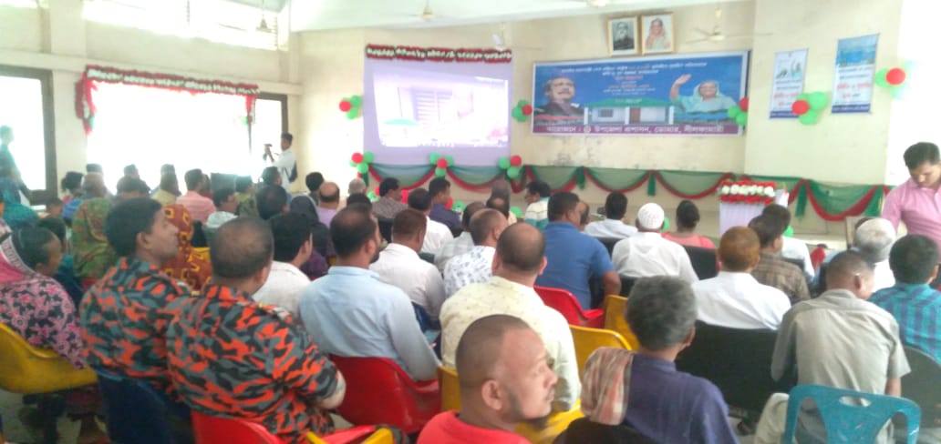 সারাদেশের ন্যায় ভিডিও কনফারেন্স এর মাধ্যমে আশ্রয়ন প্রকল্পের ৪র্থ ধাপের ২য় পর্যায়ে নীলফামারী ডোমার উপজেলাকে ভূমিহীন ও গৃহহীন মুক্ত ঘোষণা করছেন মাননীয় প্রধানমন্ত্রী শেখ হাসিনা।
