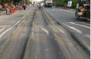 যশোর-খুলনা মহাসড়কের কাজ শেষ না হতেই রাস্তার বেহাল দশা।